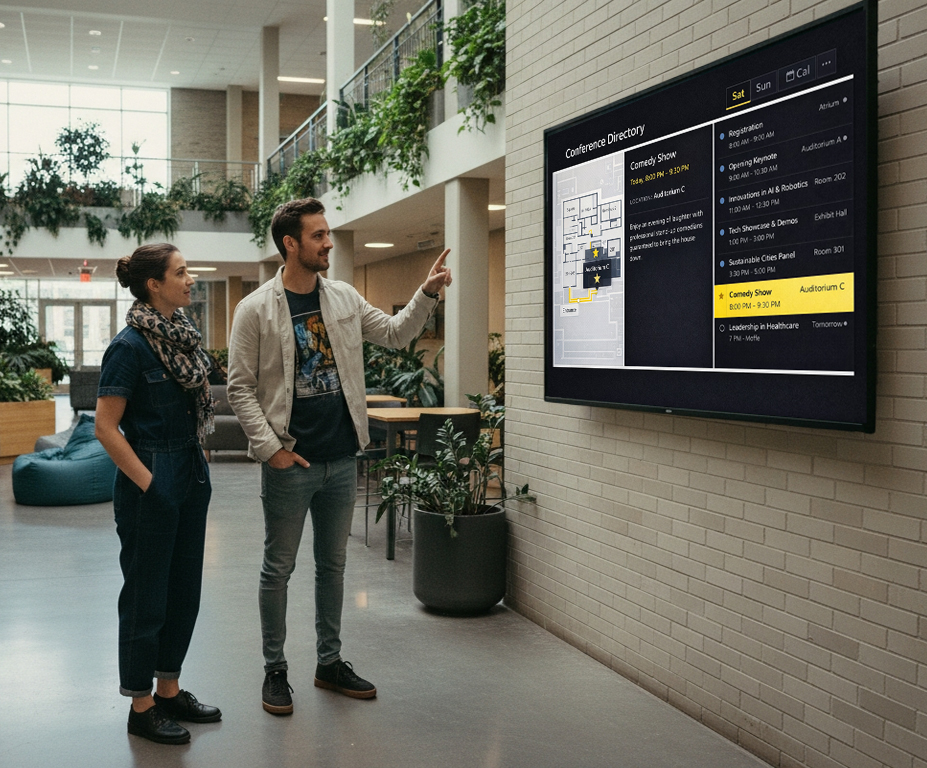 Easily displays websites, PDFs, schedules, maps, complex content, allowing staff to update and manage content without specialized technical knowledge or complex tools.